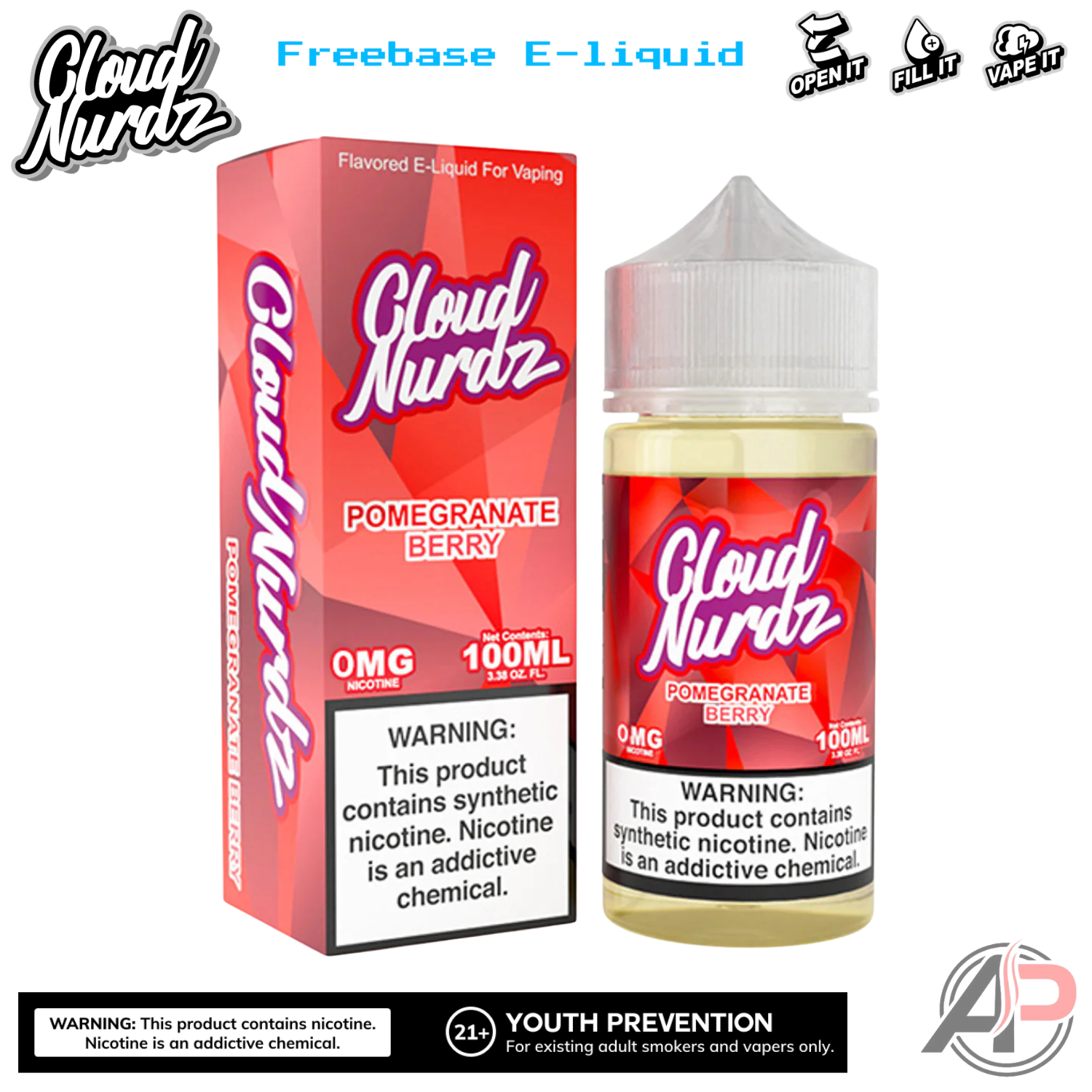- 1 x Cloud Nurdz Pomegranate Berry E-Liquid 100mL or 30mL Salt Nicotine