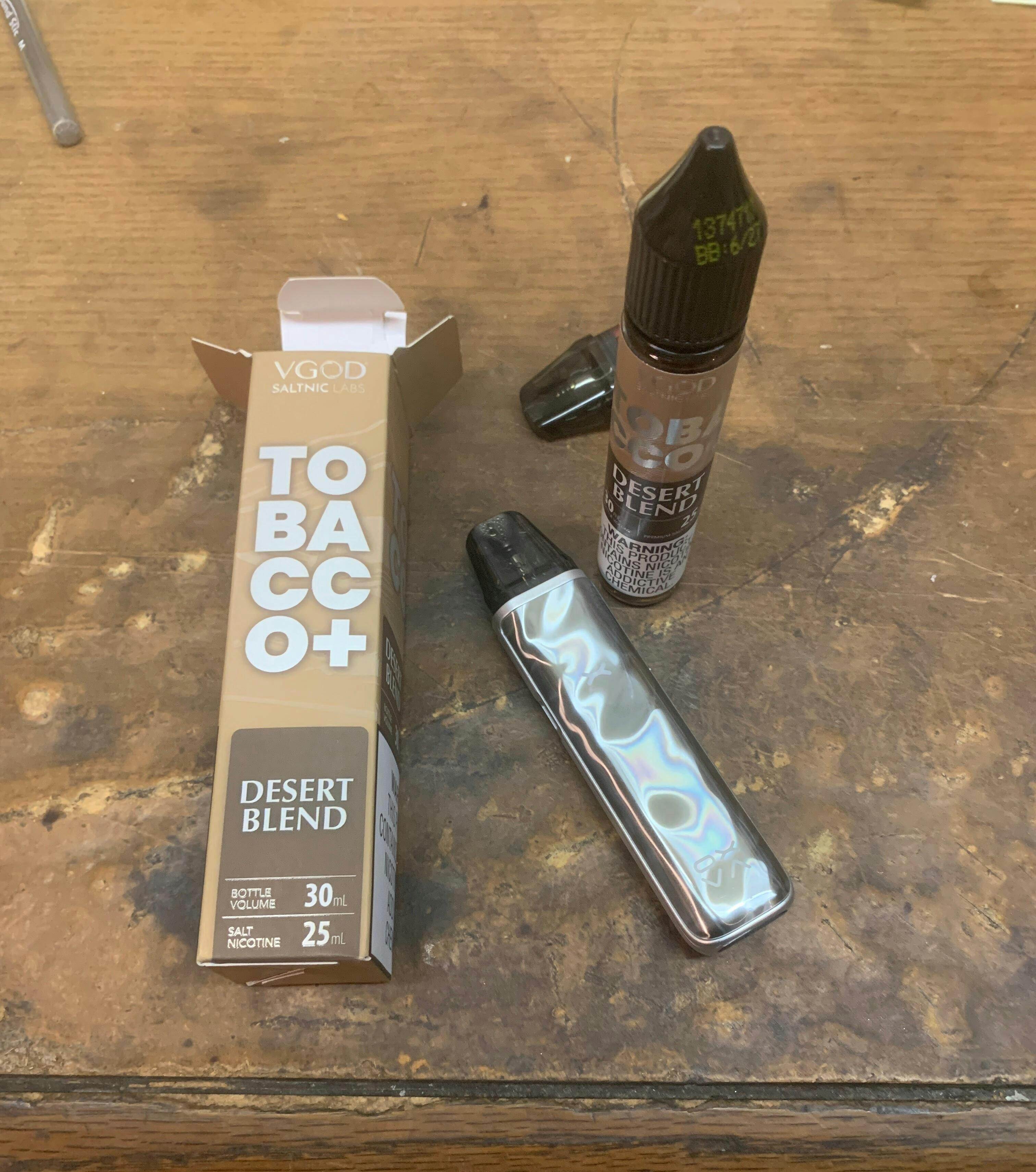 - 1 X VGOD Tobacco Plus Desert Blend 30mL Salt Nic.